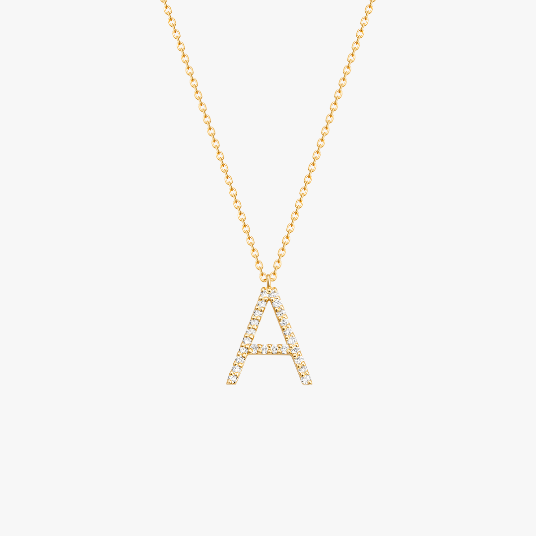 | A diamond-dusted block letter necklace is a jewelry box essential. This initial necklace is made of 18k yellow gold with 0.12 carat diamonds. The initial necklaces are available in yellow, white and rose gold. If your initial is not available please contact us on WhatsApp. We will make it for you within 3-4 working days. |